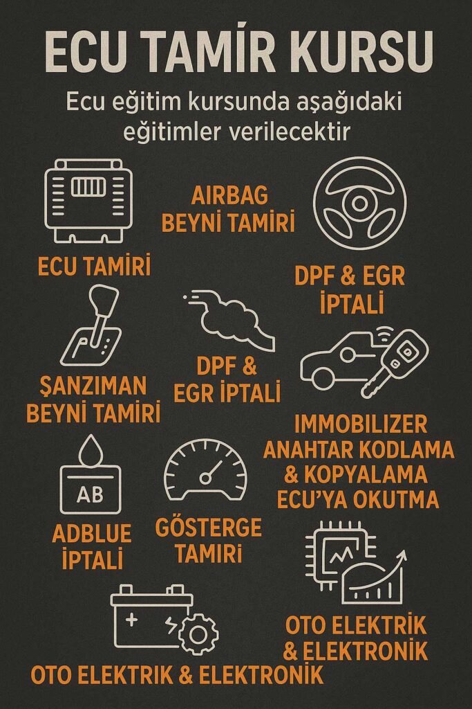 Otomotiv teknolojisinde uzmanlaşmak ve sektörde fark yaratmak isteyenler için özel olarak hazırlanan ECU Tamir Kursu, teorik ve pratik eğitimleri bir arada sunuyor. Kurs boyunca katılımcılar, arıza tespitten ileri düzey elektronik tamire kadar geniş bir yelpazede bilgi ve beceri kazanacak.